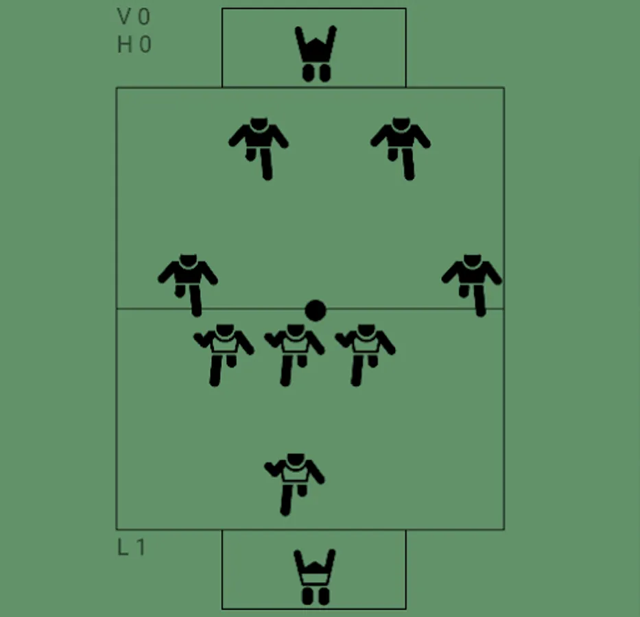 6. To pass the ball in the left diagonal direction, press and hold the right button, then press the left button.