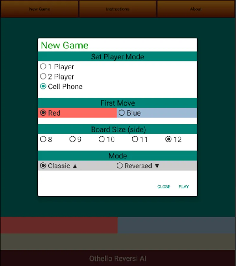 1.3. Select Board Size configured by size: Size could be from 8x8 to 12x12 board size.