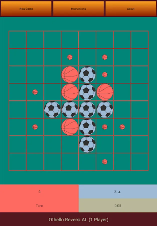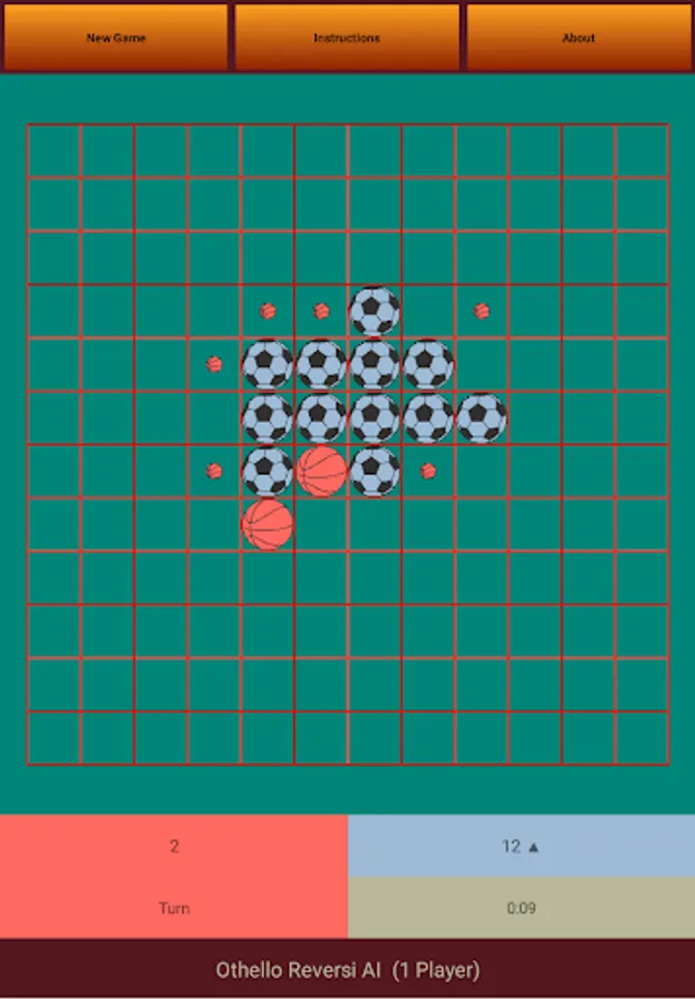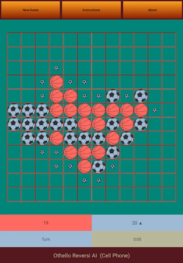 This implementation uses Artificial Intelligence to play with a player or only by a cell phone.