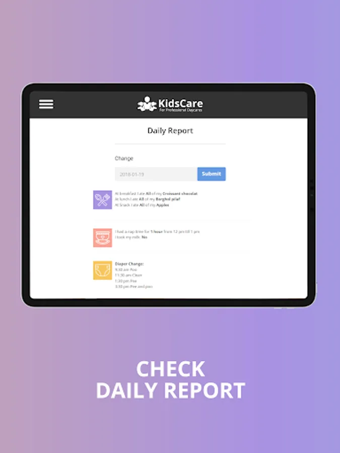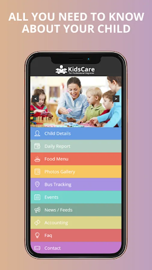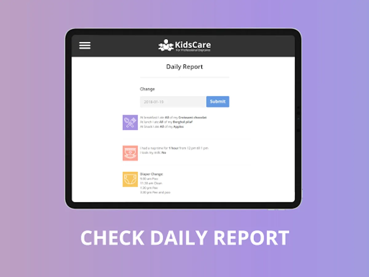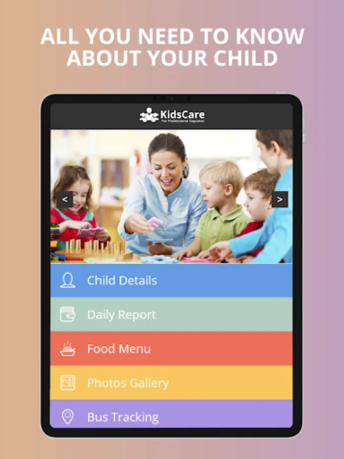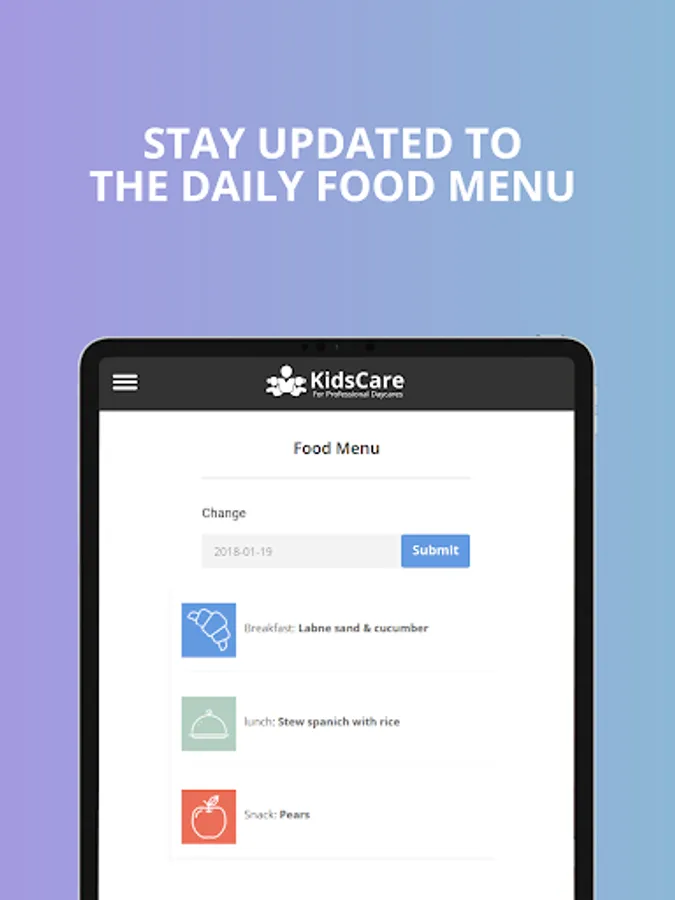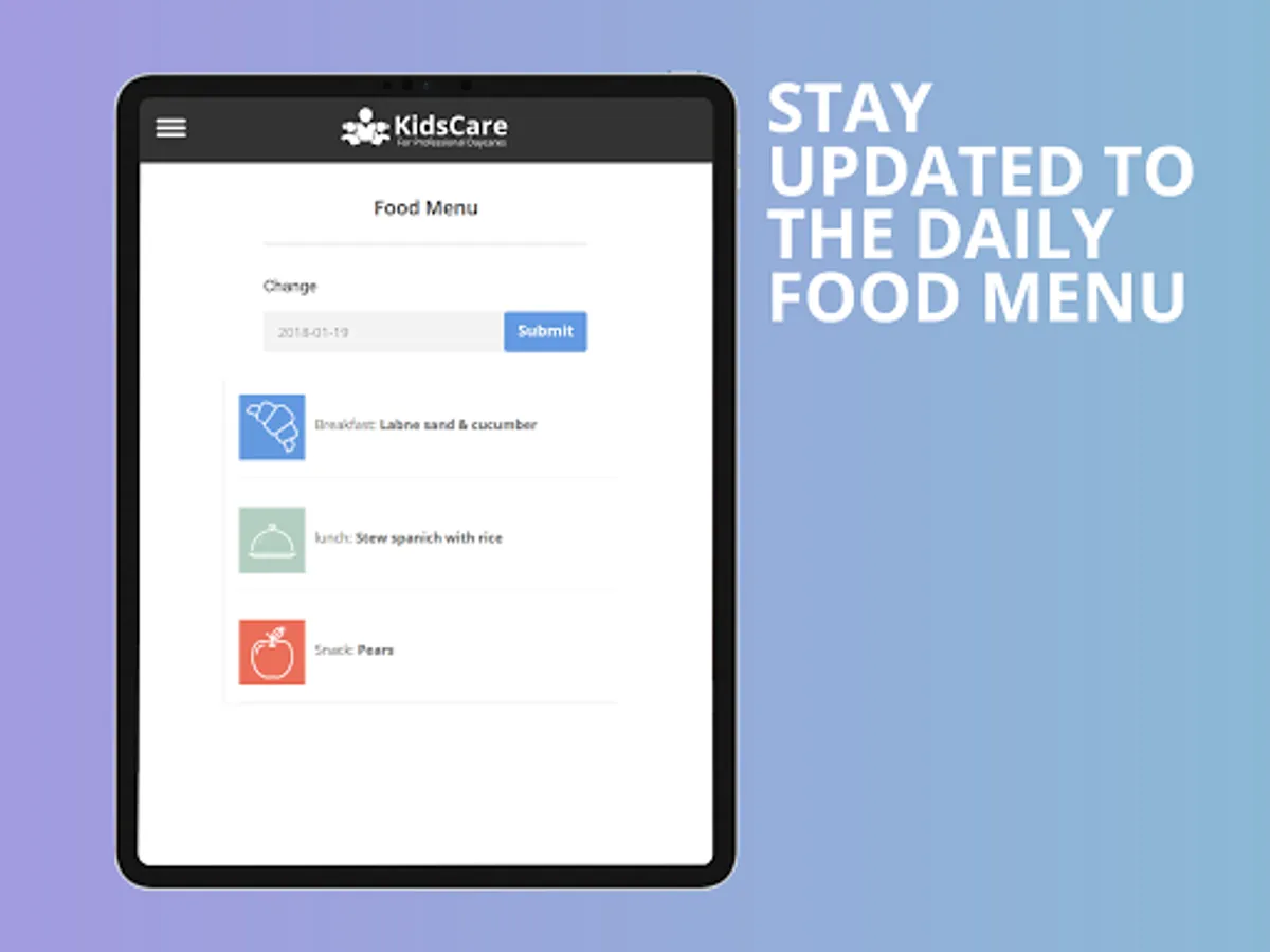 kidscare help you check your child agenda,photos,videos,meals plan and much more