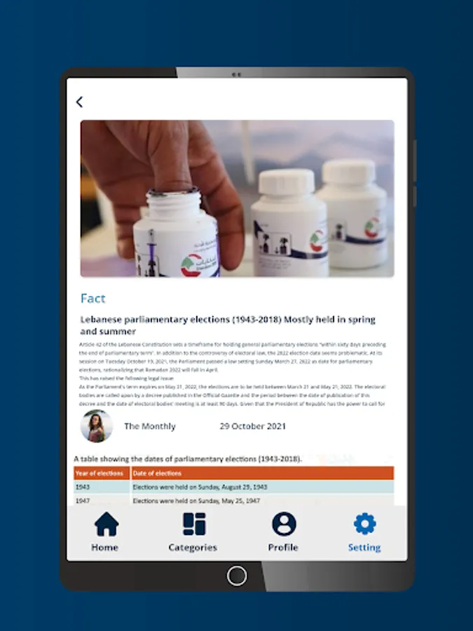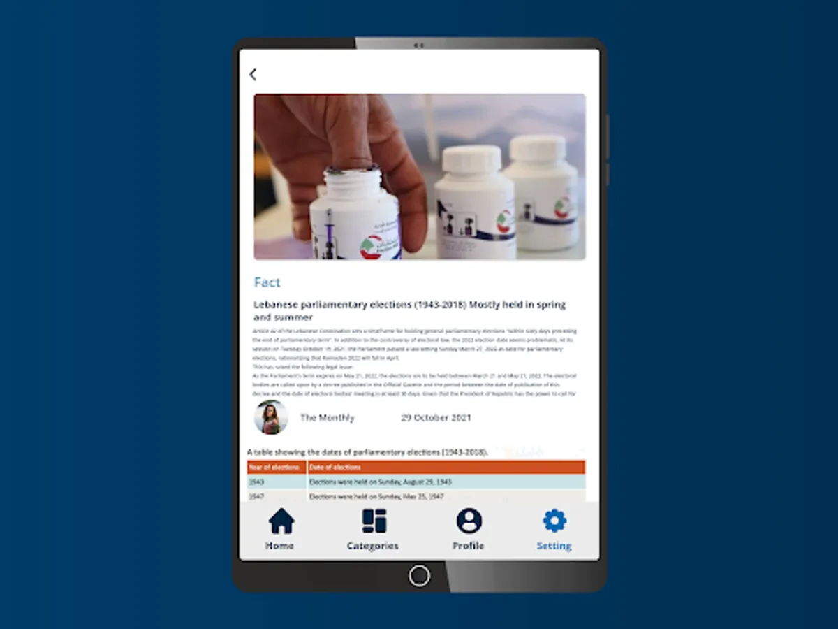 The Monthly Magazine is published by Information International, a leading Beirut-based research and consultancy firm. The publication is available in both Arabic and English languages, and examines economic, cultural and social issues in Lebanon, Jordan, Syria, Iraq and other Arab countries. It also publishes opinion polls and surveys and conducts interviews with prominent Arab and foreign figures in Lebanon, including ministers and members of parliament.