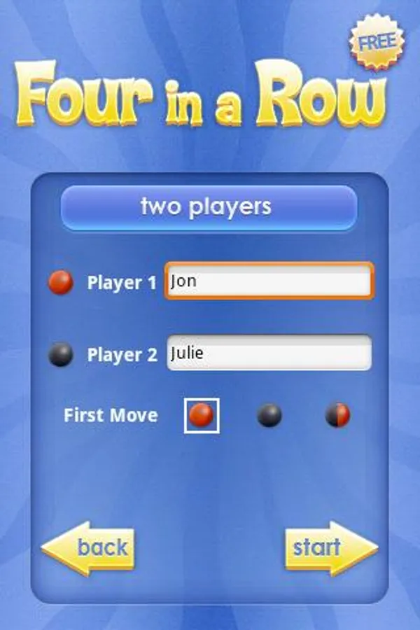 Four in a Row Free supports one player and two player gameplay, so you can play against another human or against your Android device.