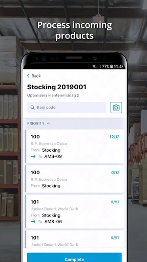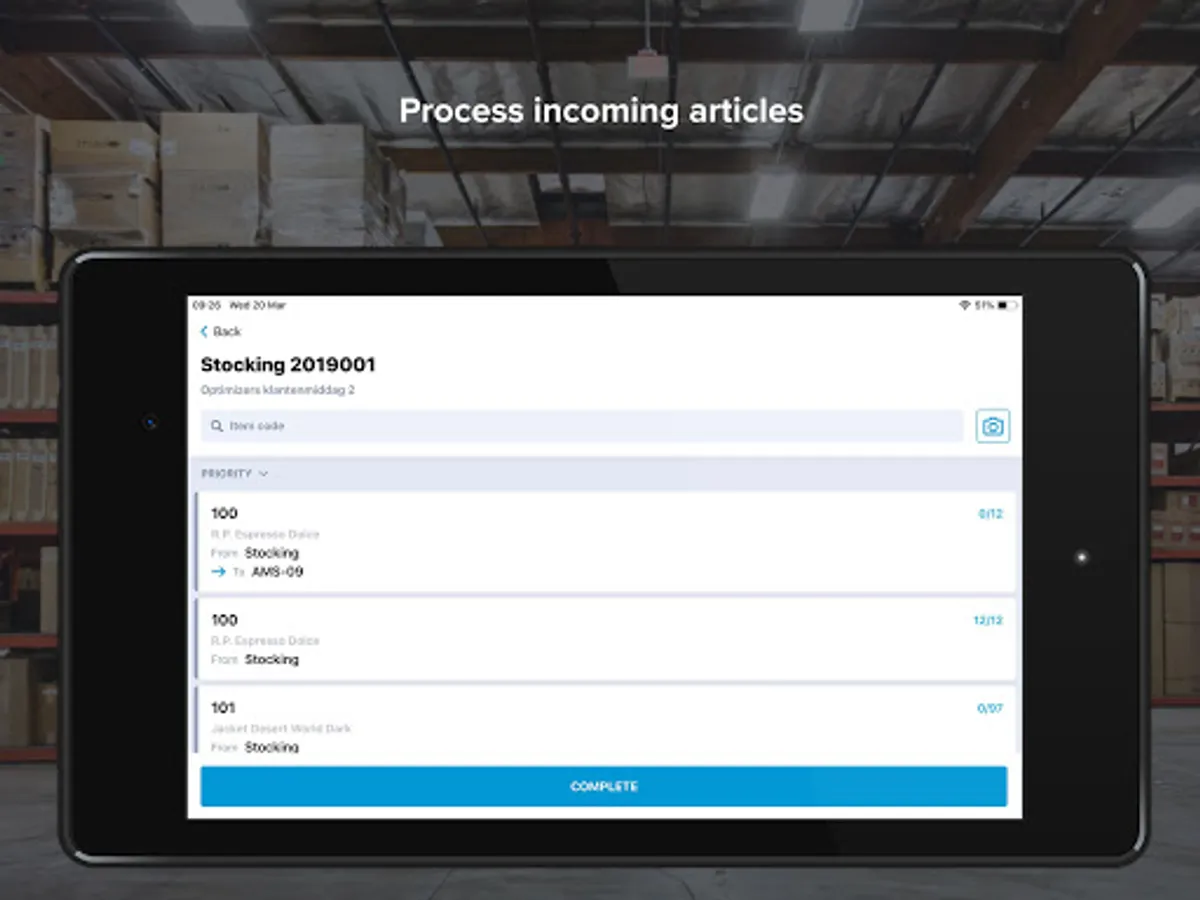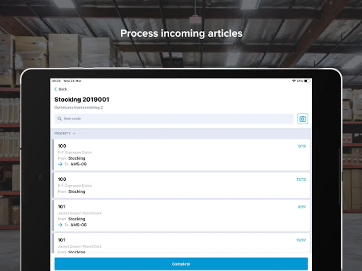 Incoming products can immediately be processed with App4picking. Assign a location to the incoming product with the app. The products and their location can be found directly in your ERP system.