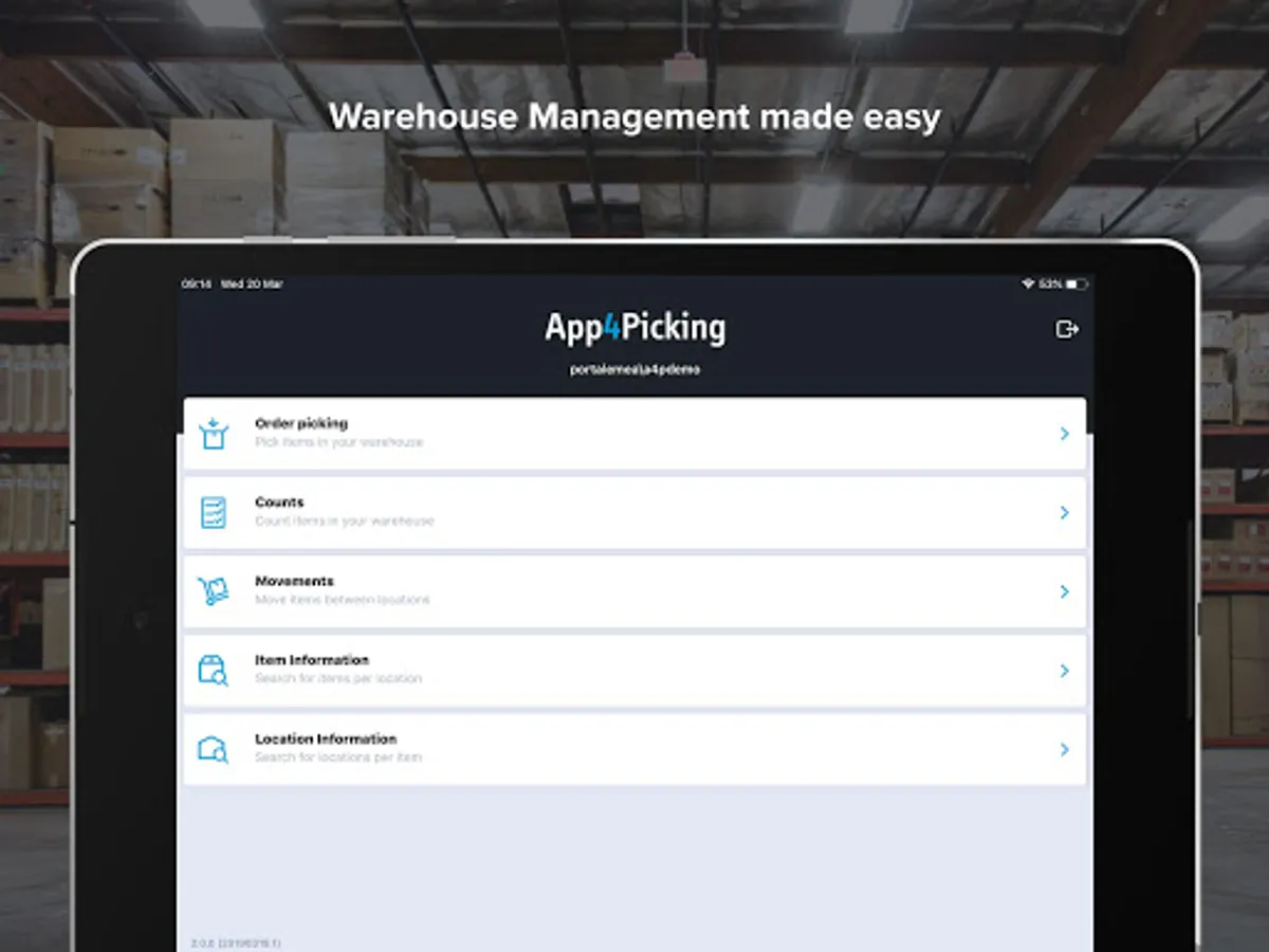 App4Picking is a mobile app that handles primary logistics transactions such as order picking, counts, and displacements through a tablet. The simplicity of the app’s functionality ensures that you can flawlessly and quickly pick your orders, perform counts, and move items. The app is quickly implemented and requires virtually no explanation, as it works in a logical way and is very user-friendly.