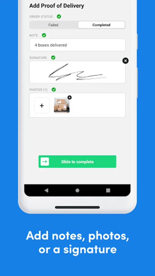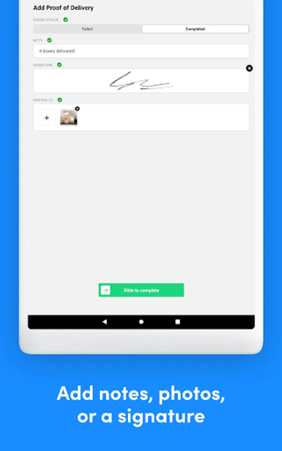 » Proof of Delivery: capture digital signatures, photos & notes