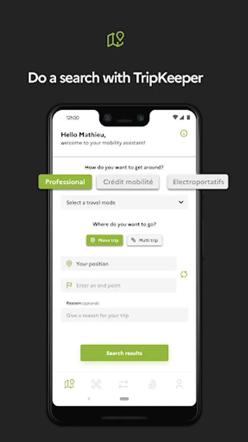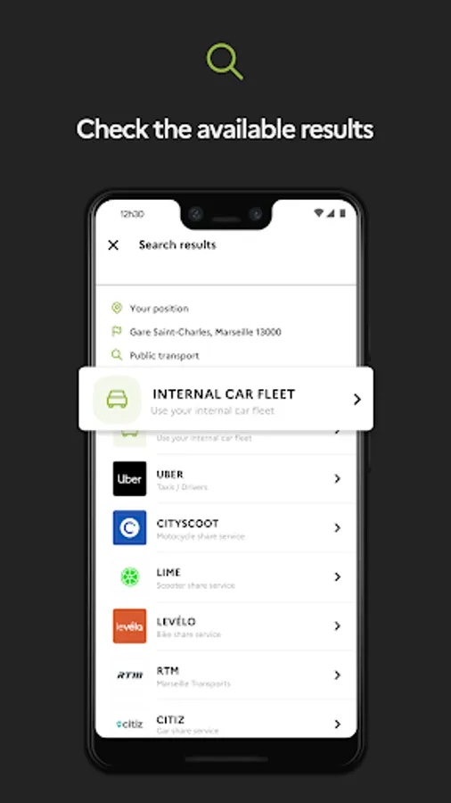 Select your travel mode: public transport, micro-mobility, taxi, ...