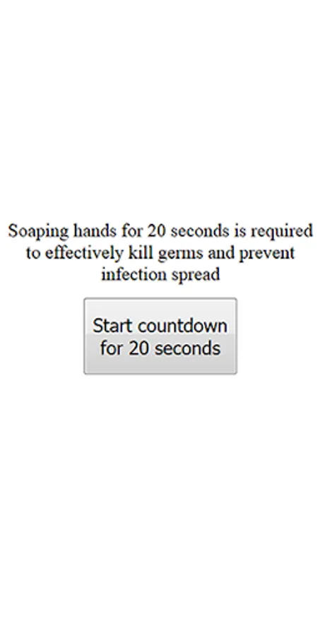 - A simple 20-second countdown timer important to ensure proper hand wash and infection spread.