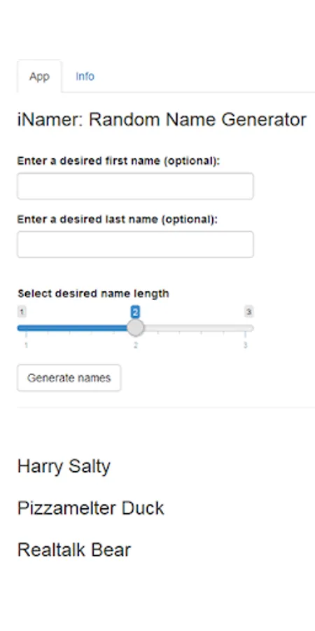 iNamer is an interactive app that generates names.