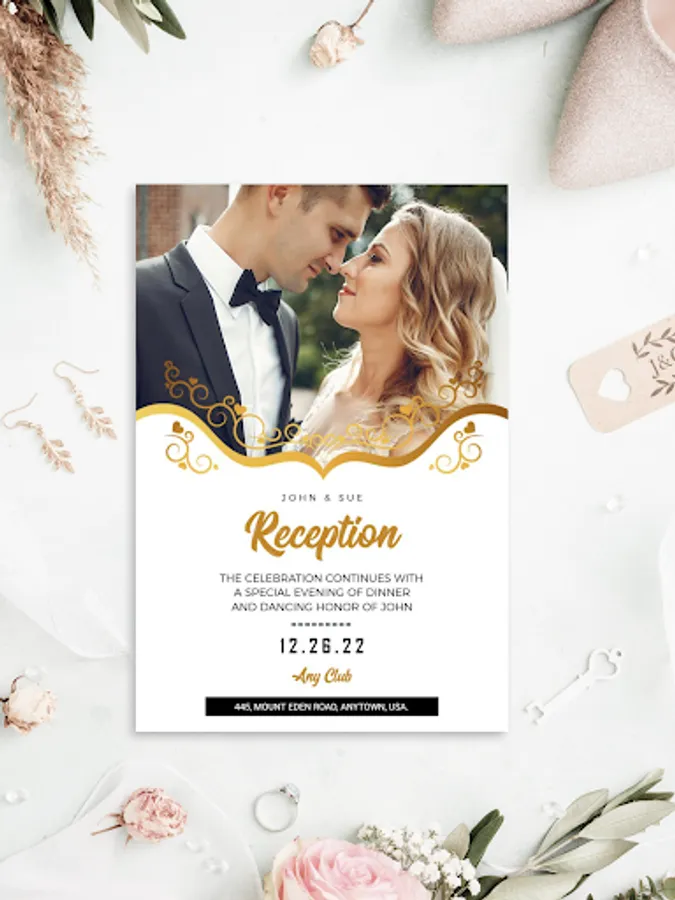 Craft stunning wedding invitations that leave a lasting impression on guests using the invitation card maker app.