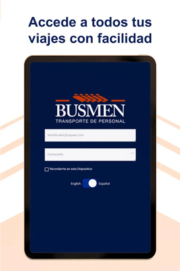 • Login screen: to start session in the application.