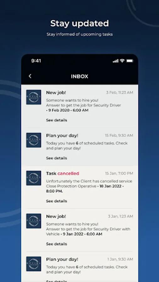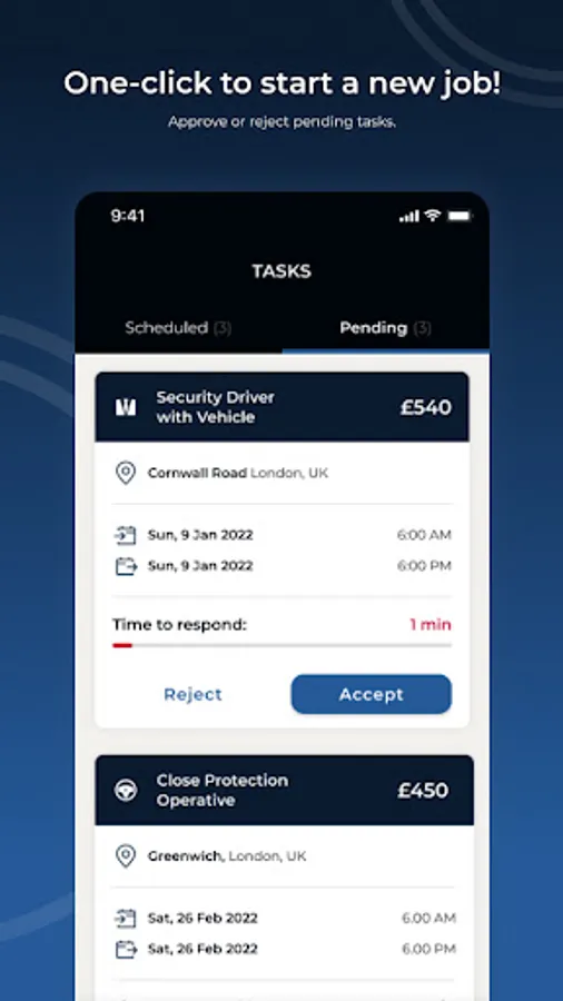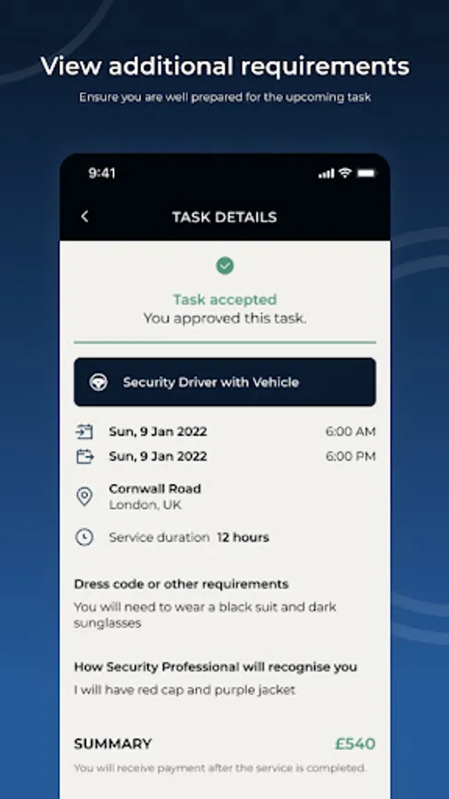 Finally, a comprehensive Security App, for like-minded Professionals, that will revolutionise the hiring process. Have your profile viewed by prospective clients in a matter of minutes. Sign up, create your profile, wait for authorisation and look forward to your first task. Created for Close Protection Operatives, Residential Security, Security Drivers, Door Supervisors, Security Guards, and CCTV Operators.