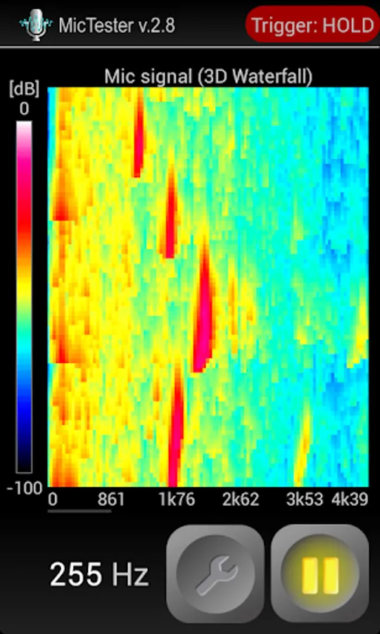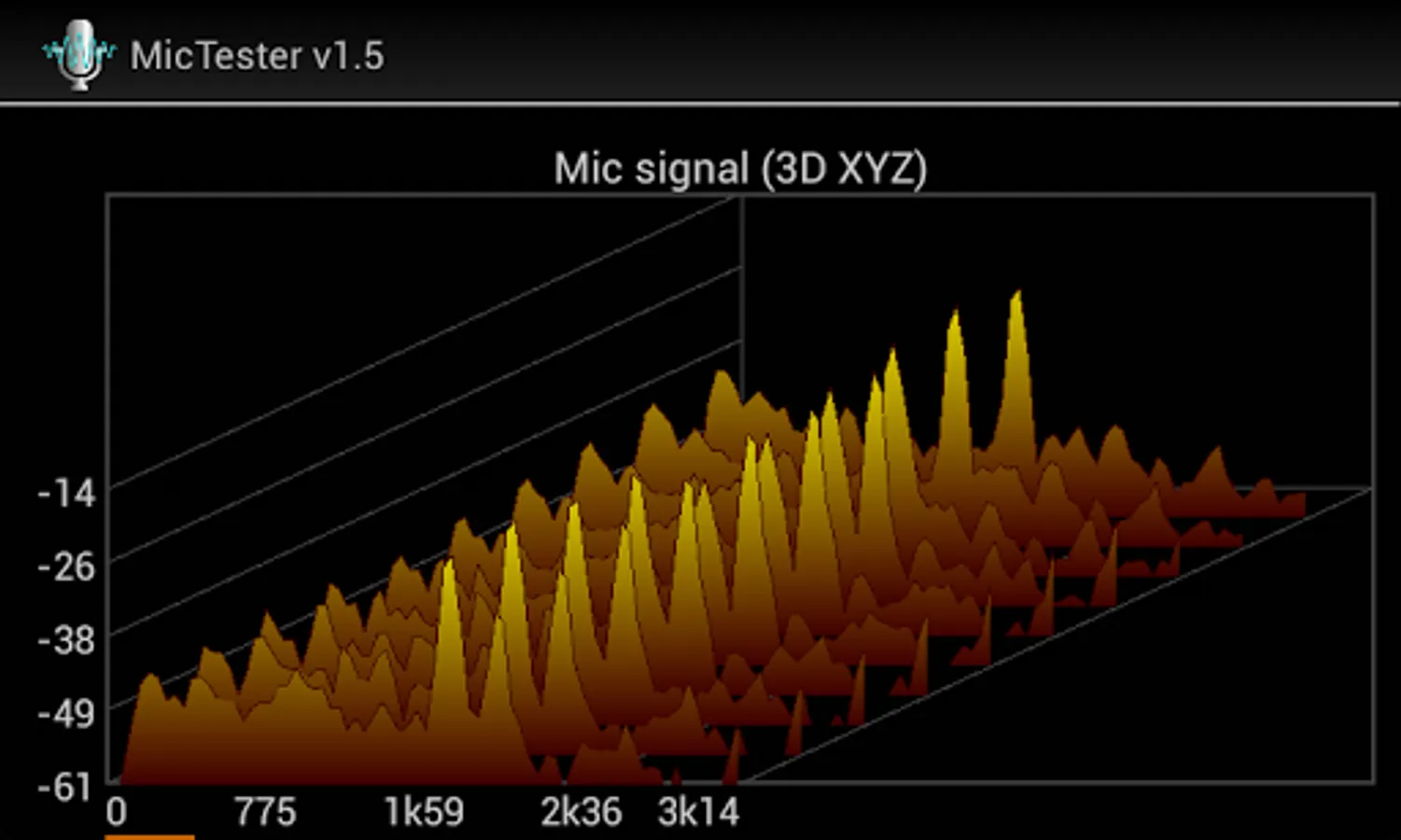 The app supports several type of sources (MIC, CAMCORDER, VOICE COMMUNICATION, VOICE RECOGNITION) and can operate in stereo mode on devices having two internal microphones. MicTester supports Bluetooth mics operating on SCO data link. MicTester can also analyze WAV signals (16/24 bit) streamed via TCP/IP.