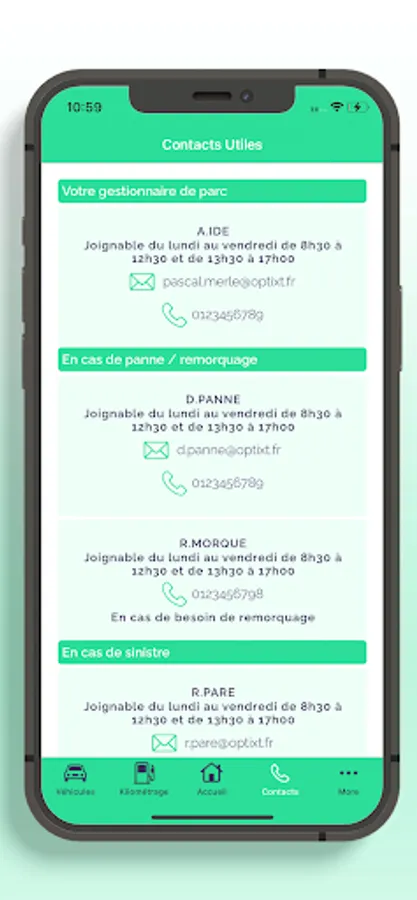 For the driver, it is the guarantee of quick and easy access to a directory of useful contacts: His dedicated fleet manager, contacts in the event of a breakdown, towing, etc.