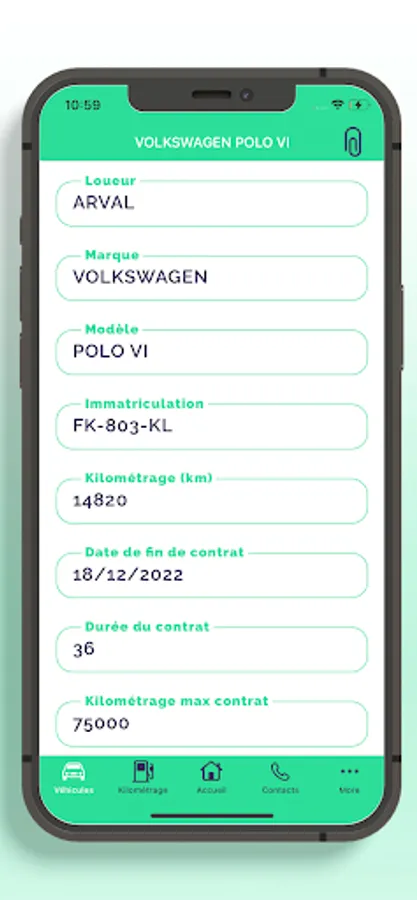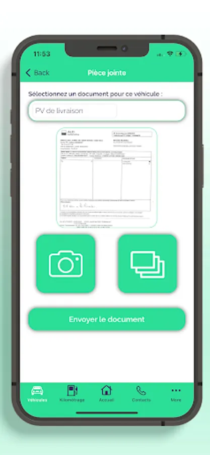 Vehicles: Overview of information about your vehicle(s). Via the paper clip, you can also send photos to your manager.