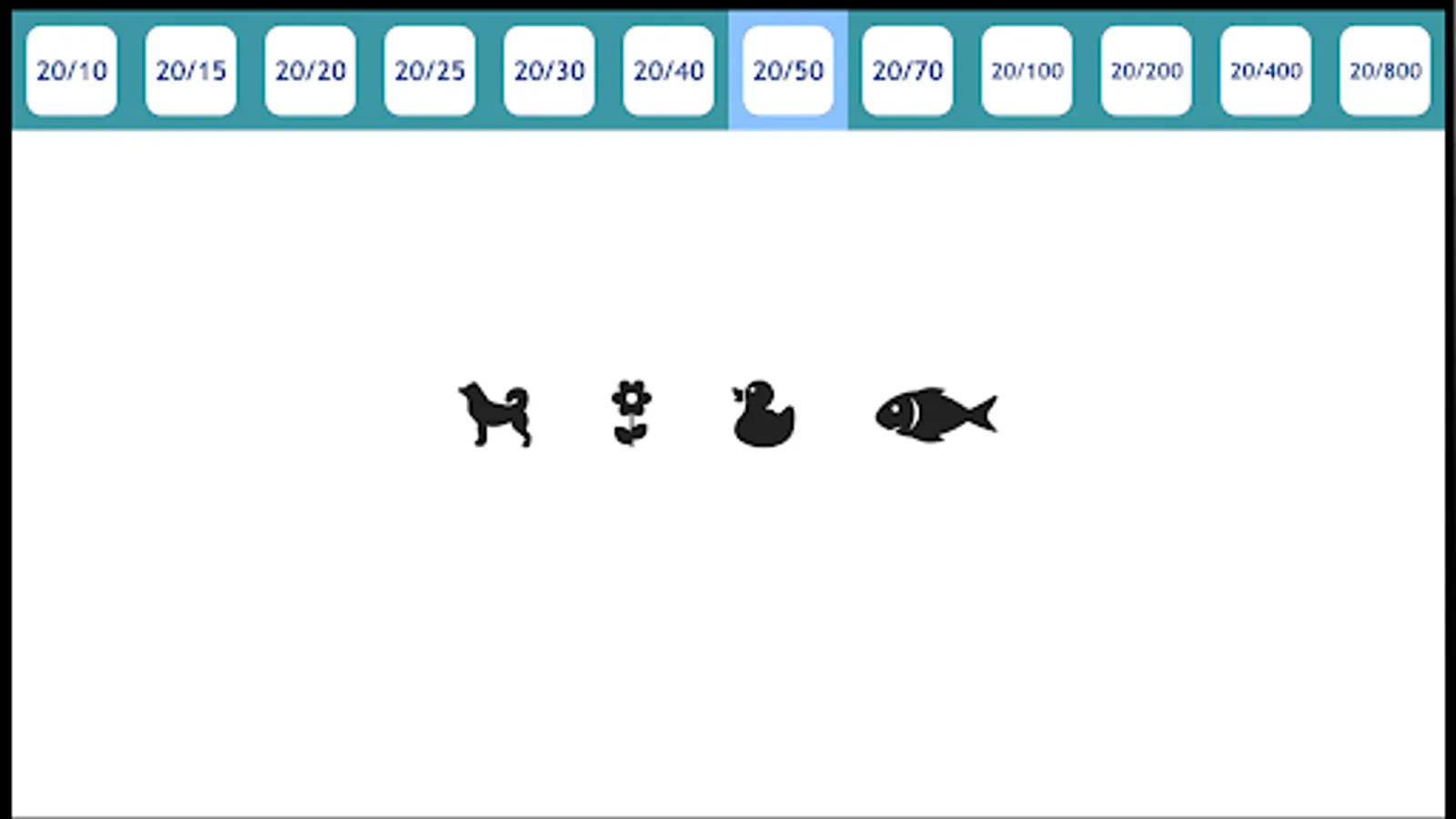 VISUAL ACUITY (LETTERS, NUMBERS, IMAGES, C, E)