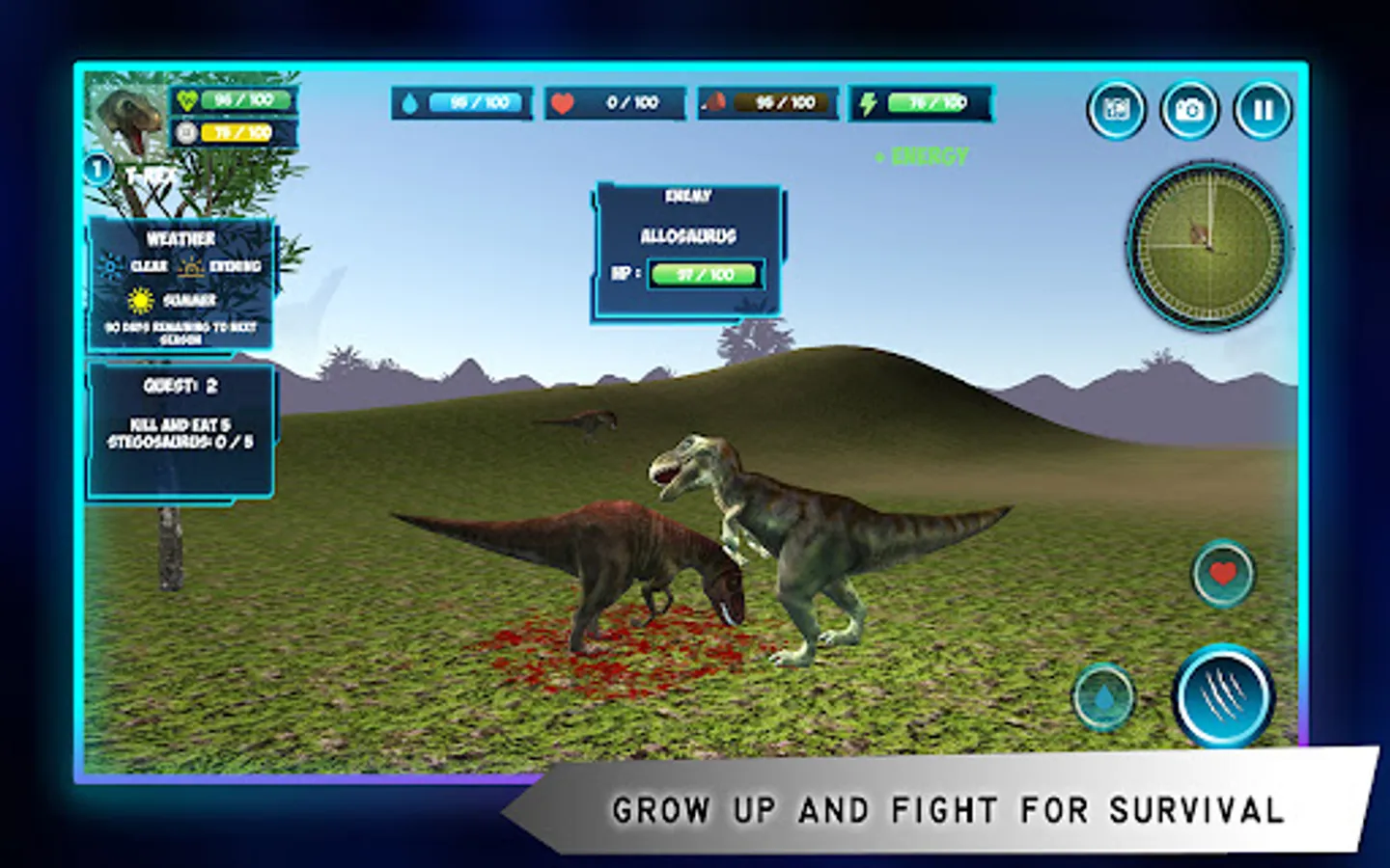 - Complete the initial tasks. Raise your dino and kill the more powerful dinosaurs.