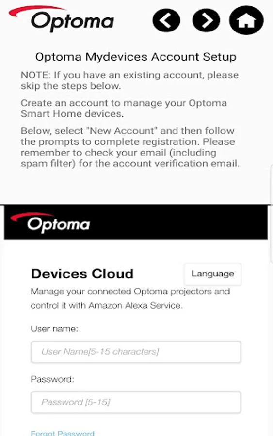 - Account creation (necessary to manage Optoma Alexa enabled projectors)