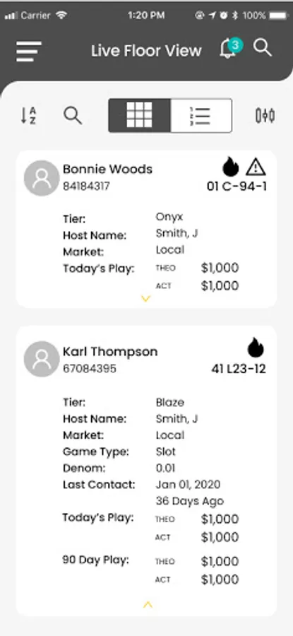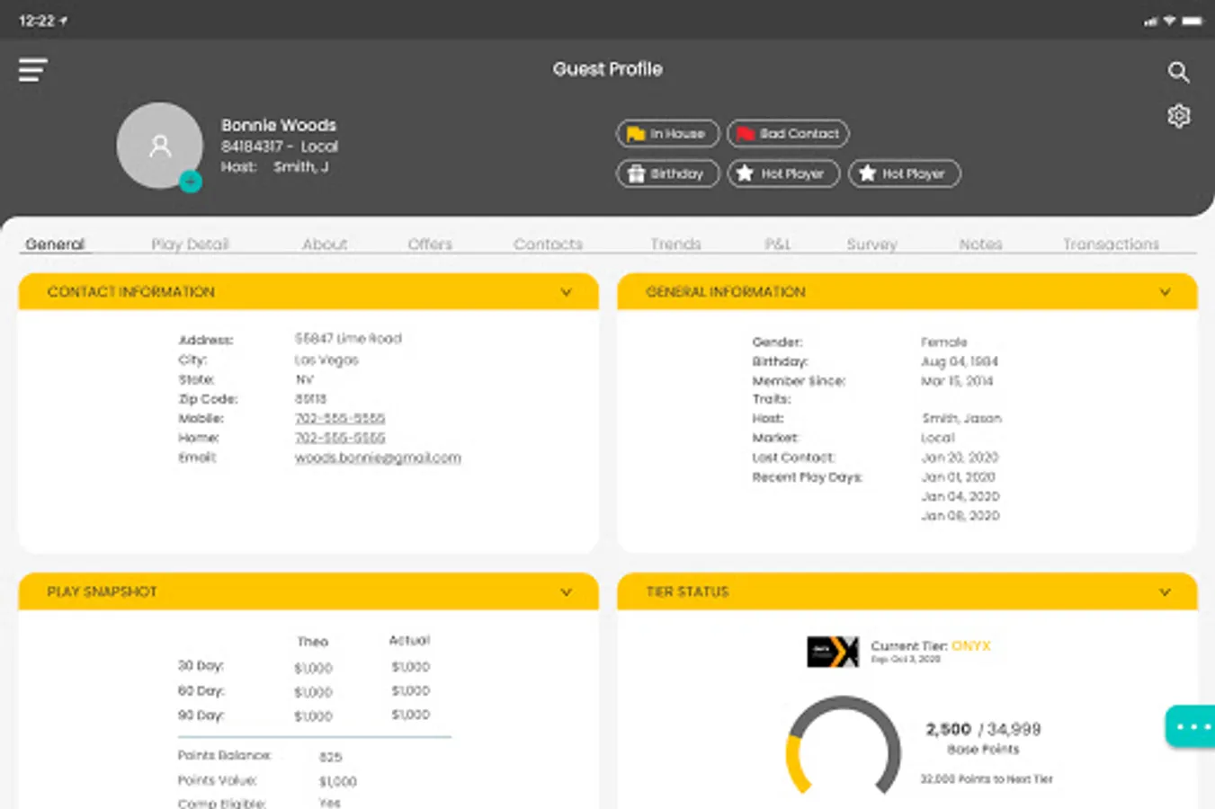 The OPTX mobile app now gives you on the go access to the in-depth Player Profile including the Play Detail, Offers, Contacts, Trends, P&L, Survey, Notes, and Transactions. Also available on the mobile app are Live Floor Monitor and Summary so you can keep tabs, in real-time, the players and trends on the casino floor. The Reservations feature allows you to access all arrivals, in-house, departures and off-property logged hotel reservations. Additionally, you can contact guests, request code, and issue a comp all with the ease of the new OPTX mobile app.