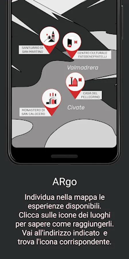 To experience this fantastic journey with Argo, go to the places of interest in Civate and Valmadrera indicated on the app and frame the images of the panels you will find on site.