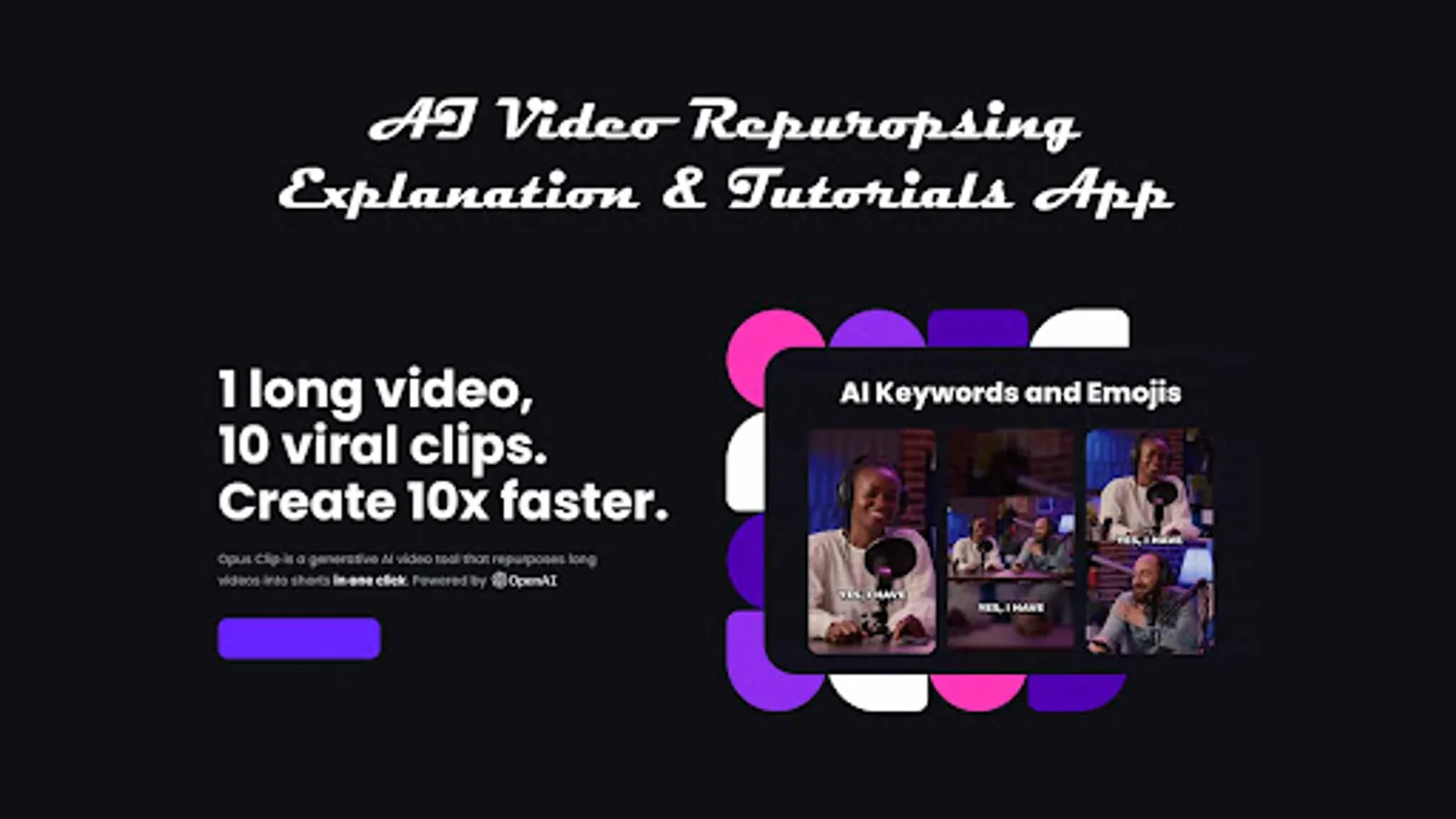 This OpusclipAI Vid Explanation App is unofficial, Not affiliated with anyone. This OpusclipAI Vid Explanation App is for educational purposes only and guides you in knowing how to repurposes long talking videos into shorts in one click using Opus Clip AI properly. All Copyrights are owned by OpenAI. Contact us immediately with any questions or misinformation.
