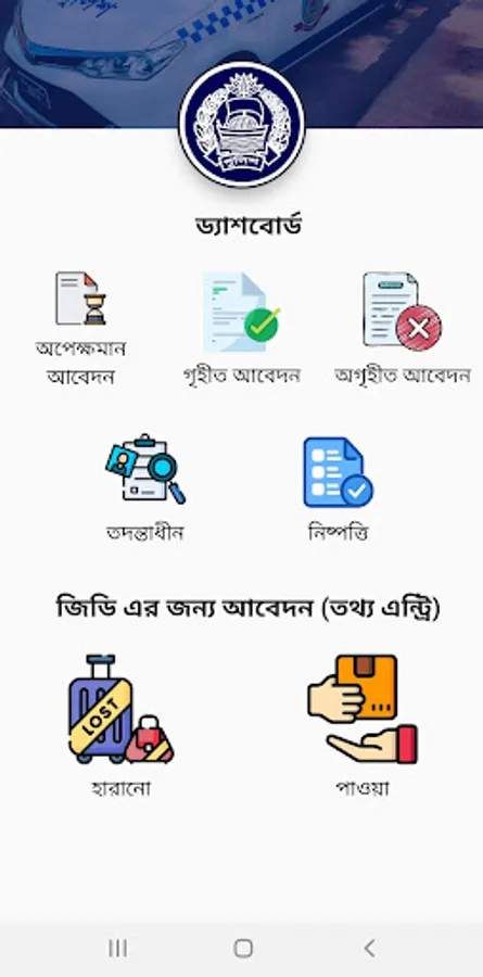 • অনলাইন জিডি ডাটাবেজে যেকোন জানমালের বিবরন দিয়ে সার্চ করতে পারবেন।