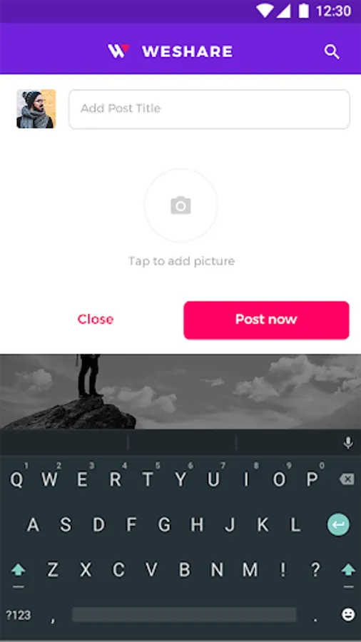 You can share pictures and videos on WeShare by using the photo upload feature. WeShare allows users to share images & videos with captions and titles.