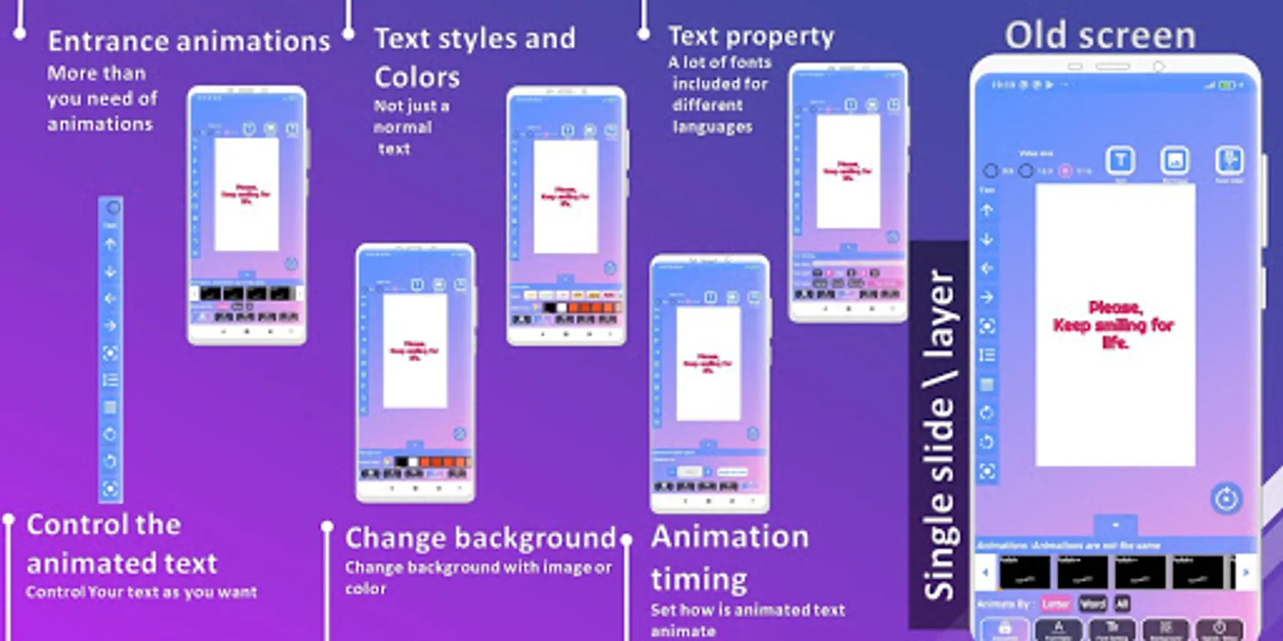 Free animated text video maker – text to video – intro video maker – Animation maker allows you to create a beautiful animated text videos with more than 500 animation types you can save and share video with social network apps (WhatsApp – Facebook – Instagram – twitter ….) , also you can style the animated text with many styles and many colors, turn your text into stunning animations with animated text app.