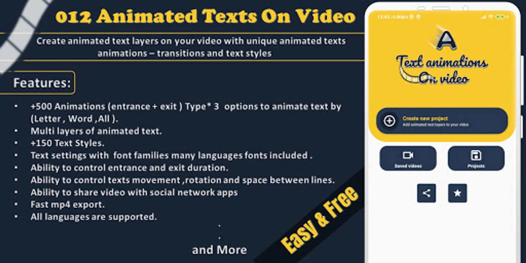 Free 012 animated texts on video is called also 012 video maker it allows you to create a beautiful ” effects “ animated text video with so many ” effects “ animation types and so many unique text styles by simplest and easiest, you can easily create animated text with no skills required you can add animated text on video for social media or any purpose.