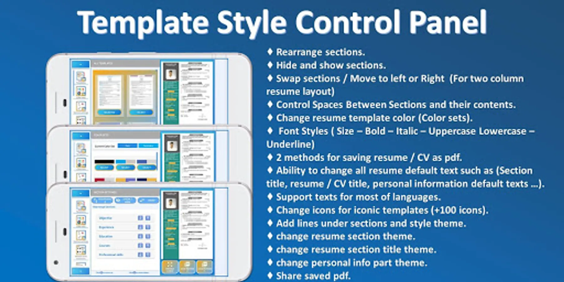║♦ Ability to change all resume default text such as (Section title, resume / CV title, personal information default text …).