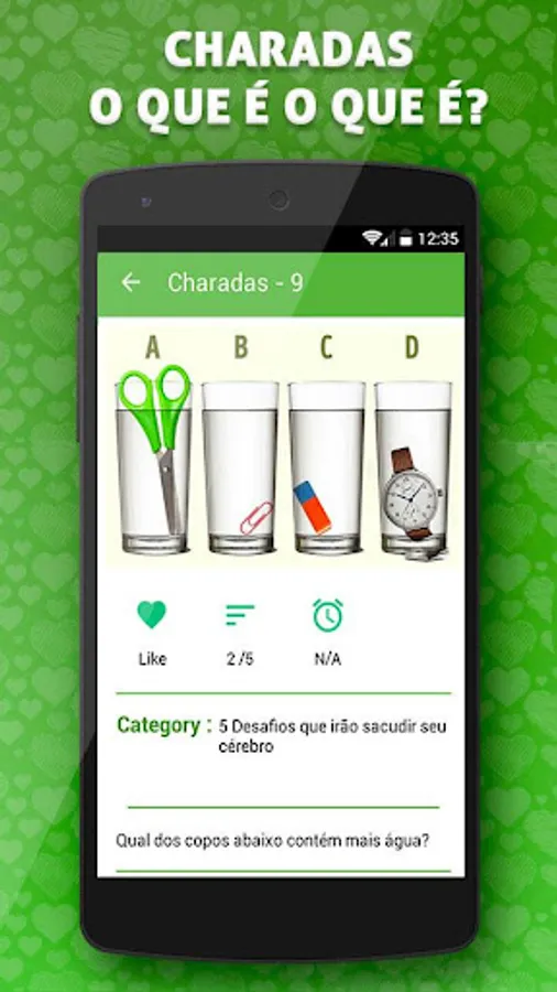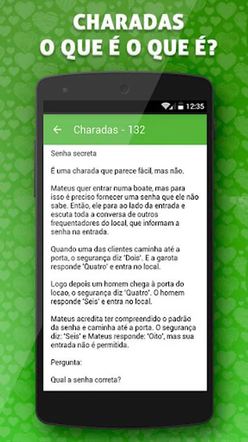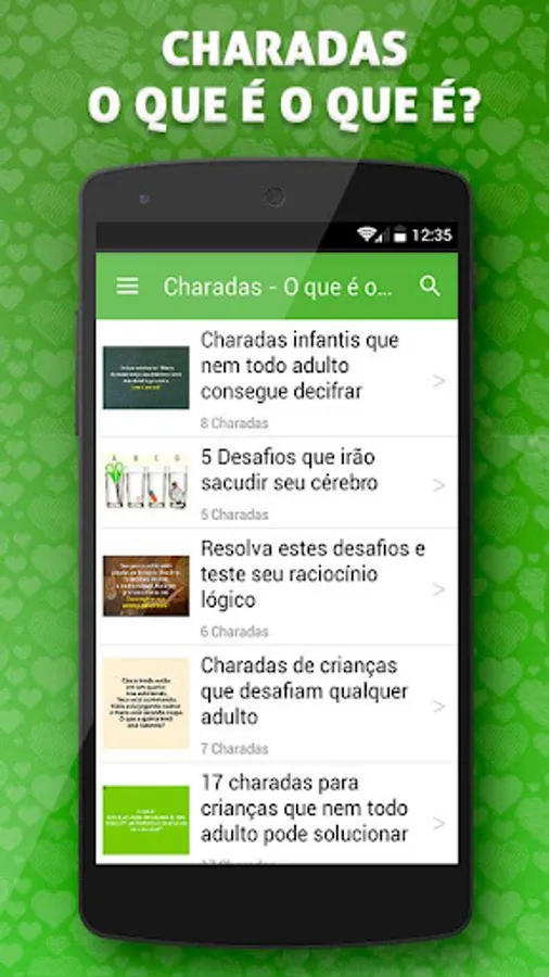 In this application I will make a compilation with the best riddles to use and have fun with your friends. It has funny, short, clever, tough riddles, logical reasoning, math, and more. It also contains some images to post directly to social networks.