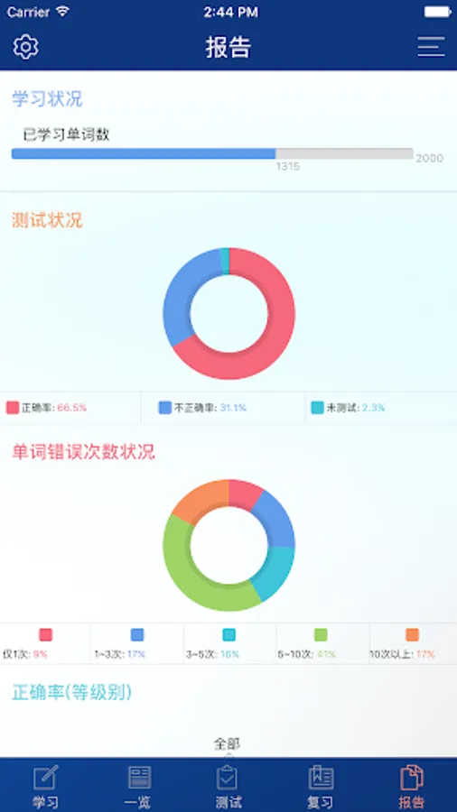All learning and quizzing processes are recorded and graphically displayed, allowing you to see your progress at a glance!