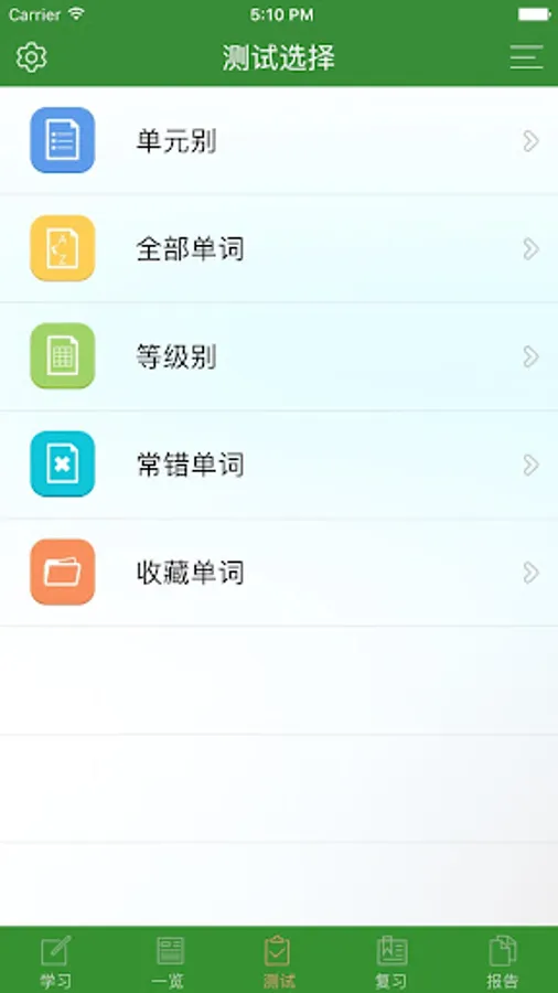 ・You can choose the test range, set the test conditions, test the words you have already learned or challenge your hearing;