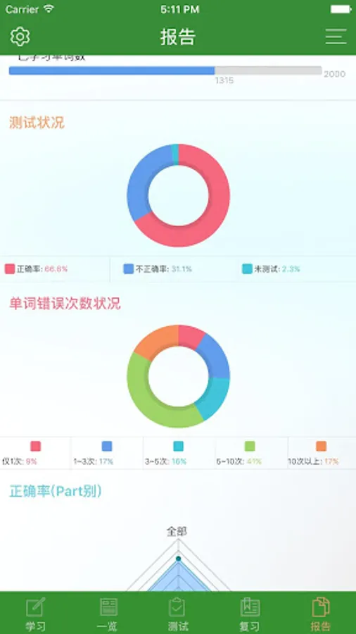 All learning and quizzing processes are recorded and graphically displayed, allowing you to see your progress at a glance!