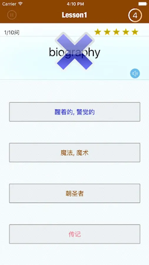 ・挑战模式,只听单词发音,从8个选项中快速回答,非常刺激,让你的心跳瞬间加速!