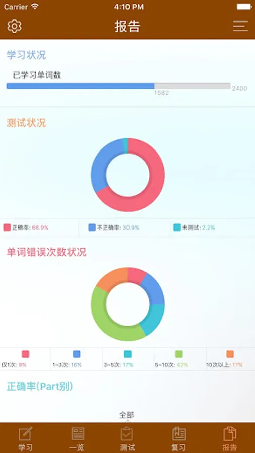 所有的学习和测验过程都有记录并用图表展示,让你对自己的学习进度一目了然!