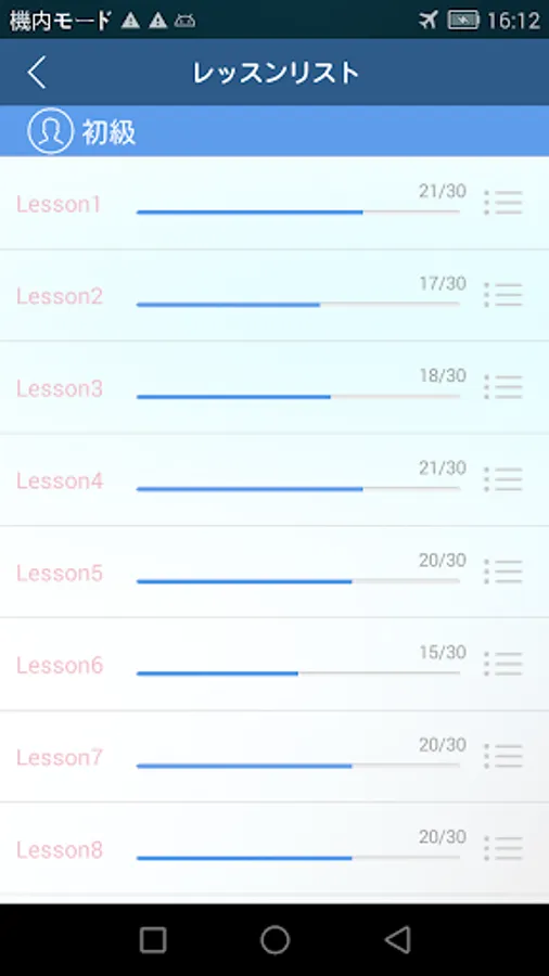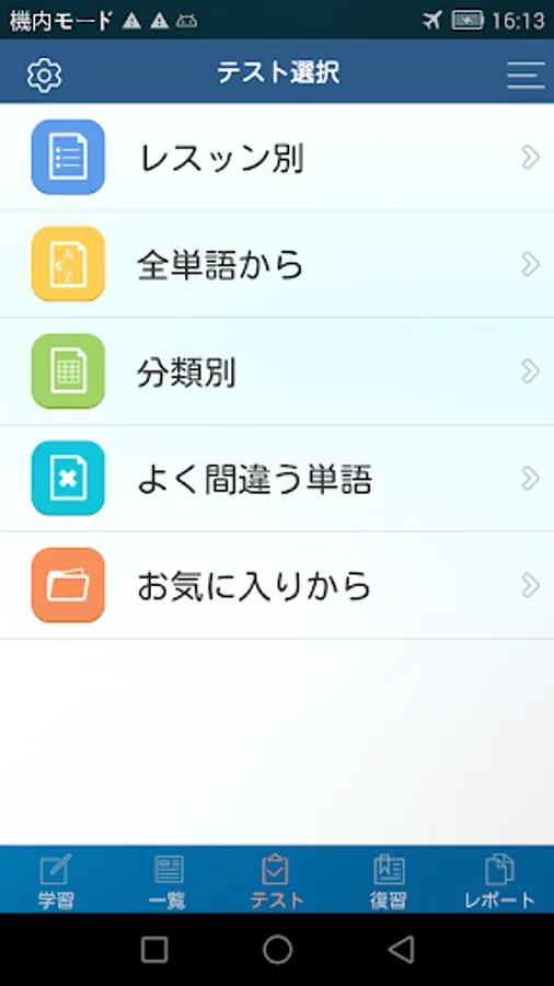 · By selecting learning, you can efficiently learn by dividing all 1,200 words into 40 lessons of 30 words each.