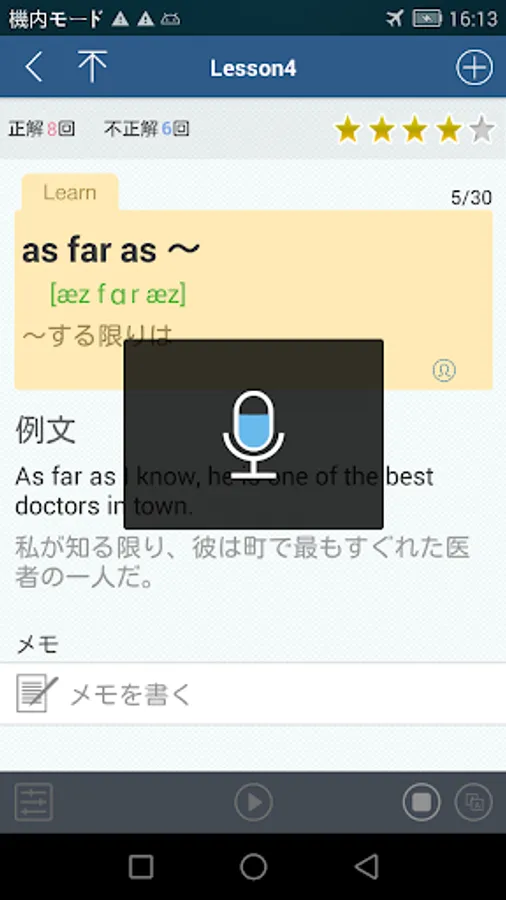 · Since you can learn the progress of word learning, you can continue learning once you enter next time.