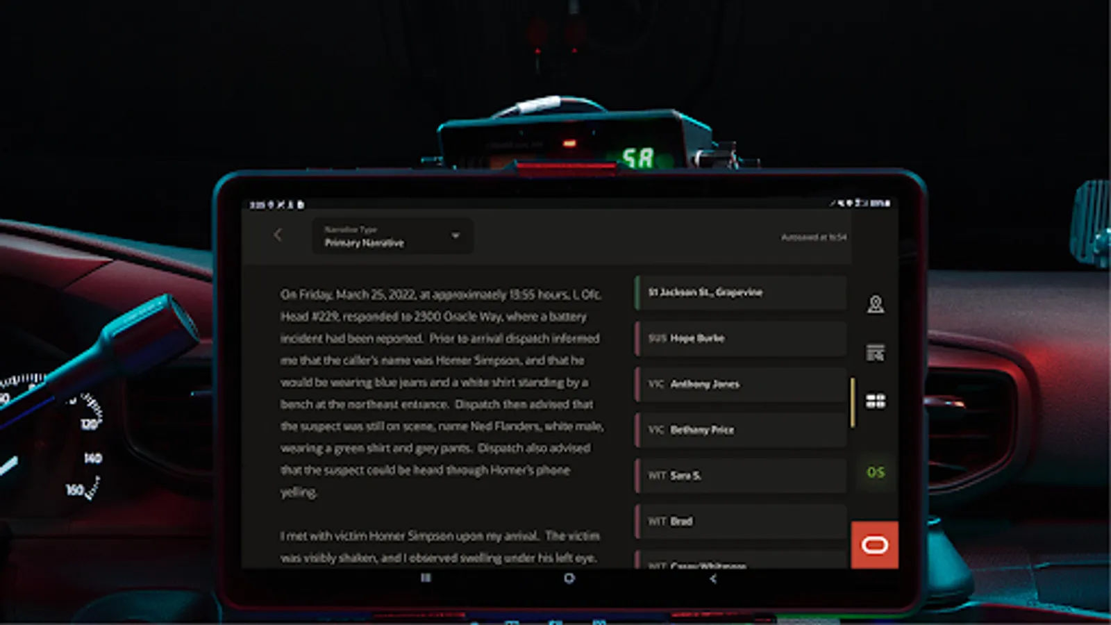 Oracle Public Safety Vehicle Communication System is a new touch-talk-listen tablet application that redefines the in-car experience by providing officers with more focused, actionable data “at a glance.” This can include key information from dispatch, navigation details, and field-based interactions between first responders and the command center. Responders can quickly and easily pull up complete records searches and case reporting and view a fully interactive map for better visibility into all other incidents and units in the area.