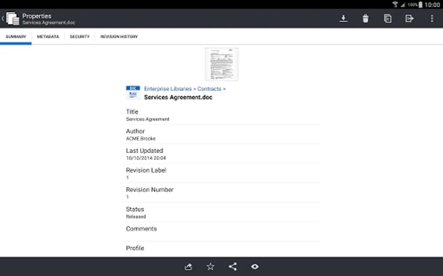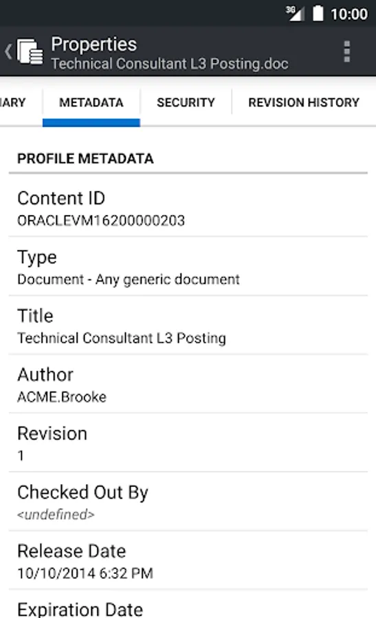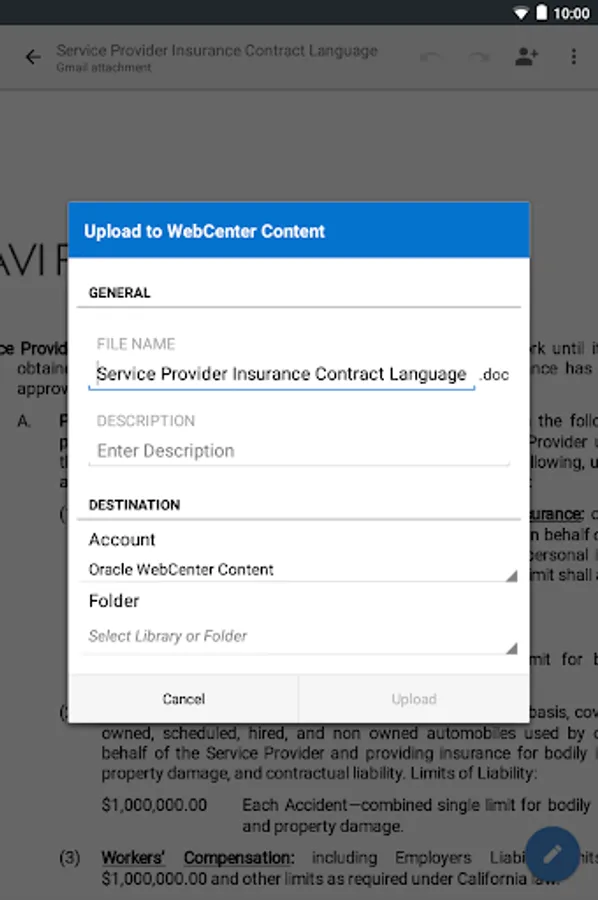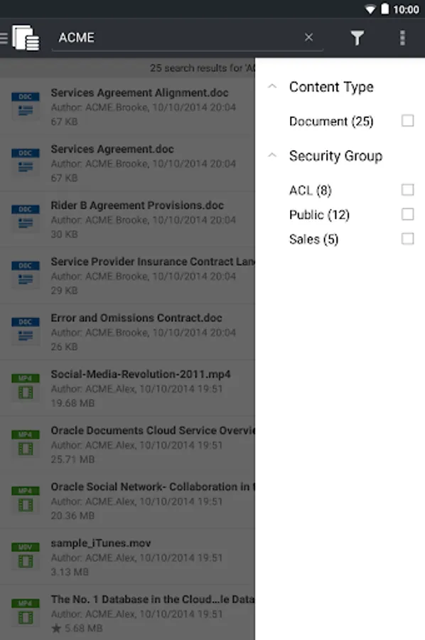 Oracle WebCenter Content for Android provides simple, secure access to your Oracle WebCenter Content environment, version 11.1.1.8.0 or higher. Users can easily browse, view, favorite and download important business documents from virtually anywhere. With the ability to download, critical files are stored locally and available with or without an Internet connection. Oracle WebCenter Content for Android ensures that your mobile workforce can stay informed and up-to-date with the most current information - ensuring better business decisions and faster resolution of issues.