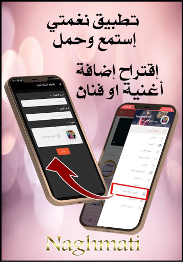 New: The Naghamati application for Arabic songs gives you the opportunity to suggest any song you want, and we add it at the moment in order to carry it on the phone without updating the application
