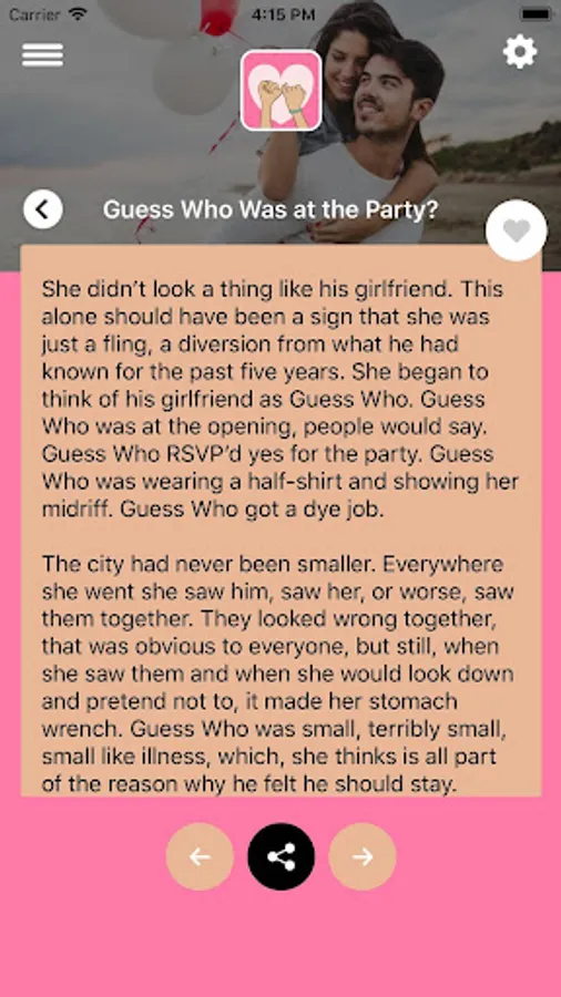 Heart Touching Romantic Story app is a great way to communicate and share your feelings with loved ones. Romantic Poems cannot compare to anything. They are from unbridled emotions felt deep within one's soul. They can touch another at a very different level than any other form of poetry. Romantic Poems are a quick way to send a loved one a quick thinking of you thought expressing your love or passion for them. It does not matter if you are either expressing your feelings through writing or using previously written romantic love poems can improve your emotional health as well as make the receiver's day special.