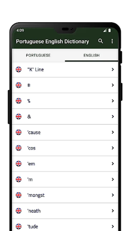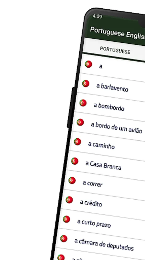 - Support both dictionary direction by switching english – Portuguese and Portuguese - english