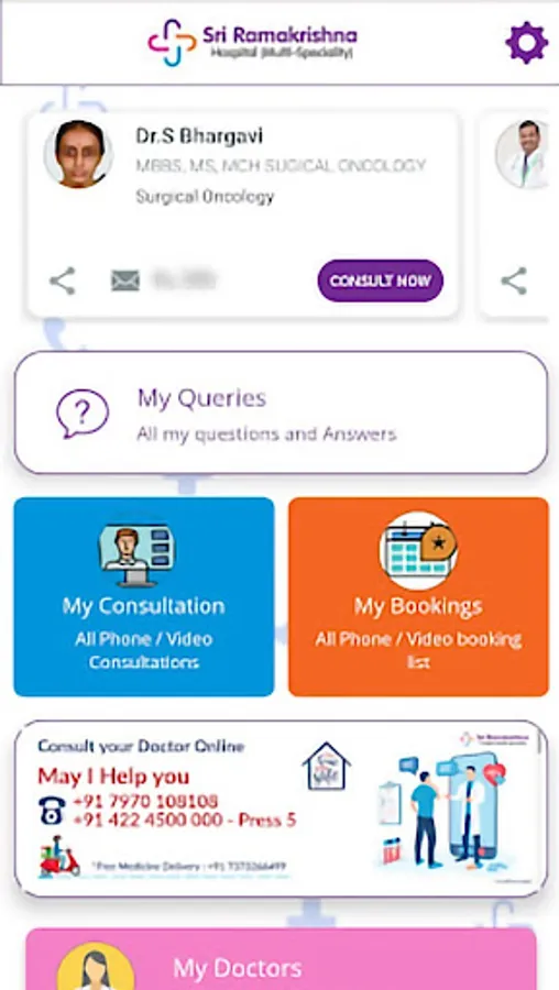 Sri Ramakrishna Hospital is a Platform Hospital to do virtual consultations. Connect with your treating physicians instantly without any hassle via Video consultation.