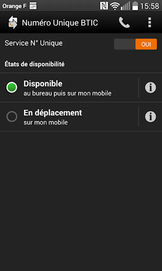 - "Available at the office": your calls are directed to your landline, then to your mobile or mobile phone. If the call is not answered, it ends on your mobile's voicemail if it is configured for mobility.