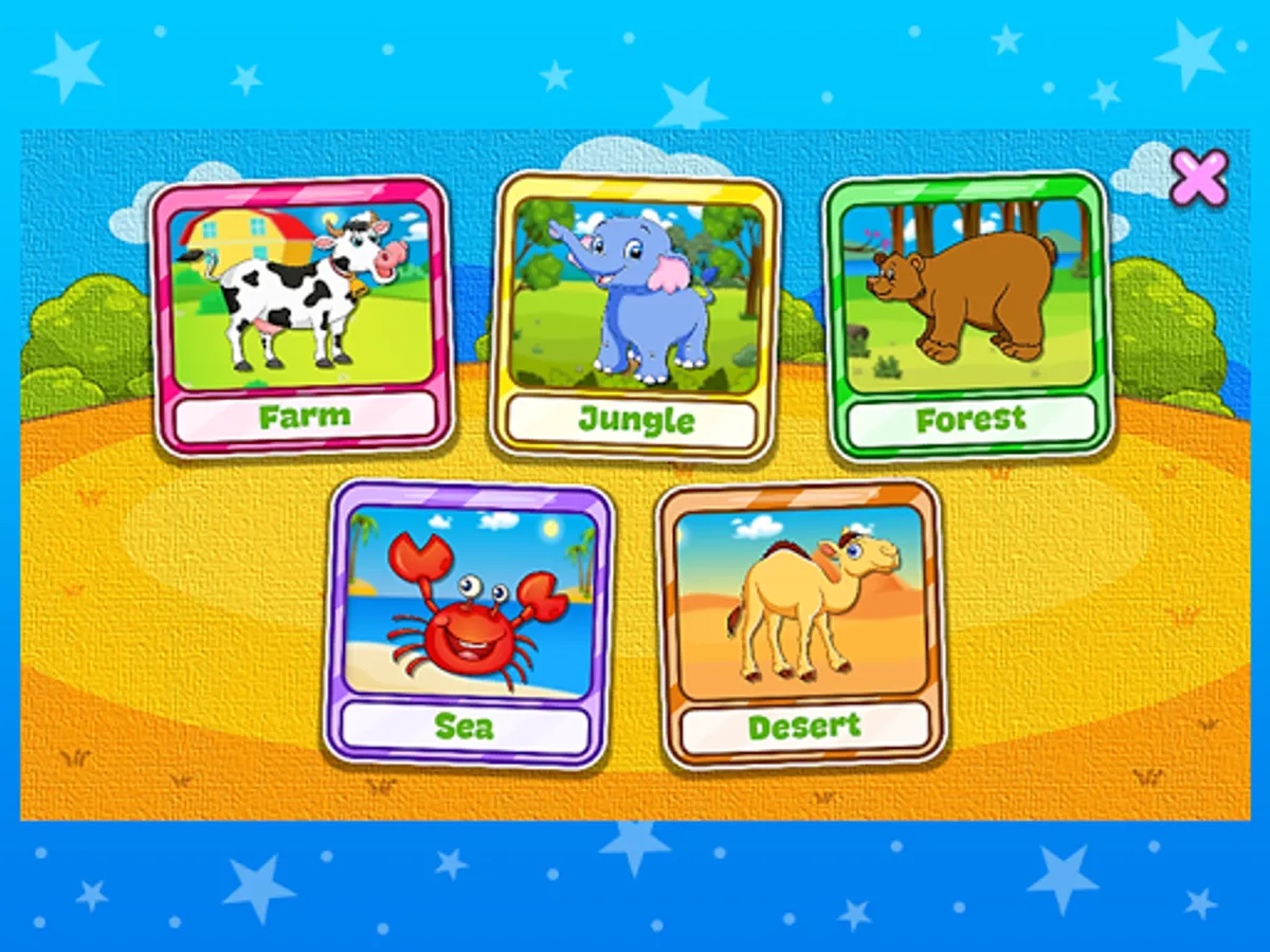 ★ Animal Puzzle: Solve the beautiful animal puzzles of the farm, the jungle, the forest, the desert and the marine world. In addition you will learn the sound of each animal.