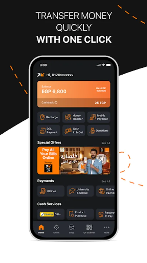 With اورنچ كاش manage your money, and secure your bill payments at your convenience.
