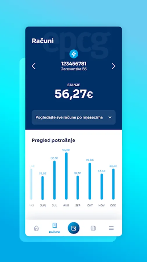 Download the Electric Power Company of Montenegro application to quickly and easily view all your electricity bills. Also, the application provides an insight into the consumption history, as well as a comparison of electricity consumption by months in the last year.