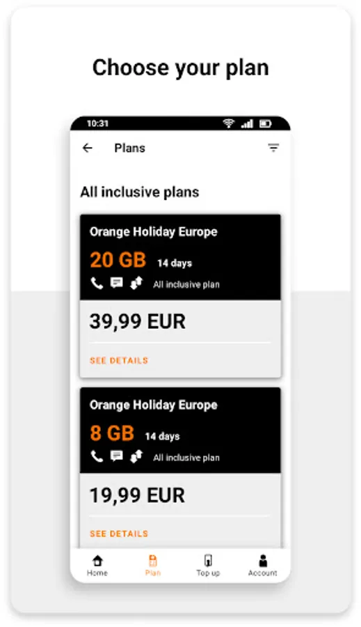 Don’t worry about staying connected in 4G or 5G during your trip abroad. With Orange Travel app, you can buy from home, top up and manage a generous local eSIM plan comfortably, in a few clics and avoid roaming fees.