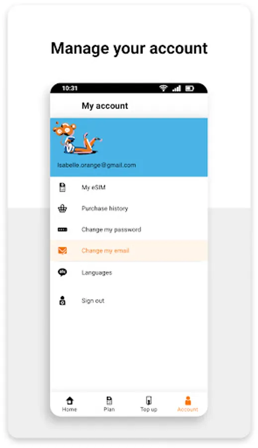 If you plan to stay longer, or need more abundance, use our top up feature, and manage your eSIM according to your need.