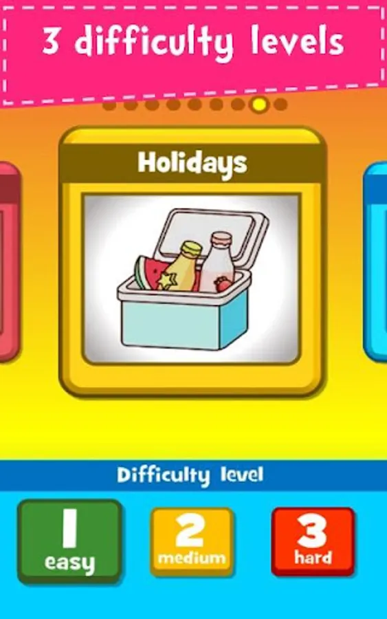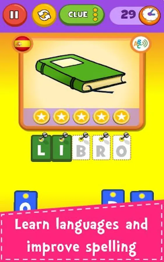 Can choose between different levels of difficulty according to the age of the child or adult. The language to practice and the use or not of clues.In the "easy" level, the children will be guided by the application about how to spell every word, teaching them to read and write.